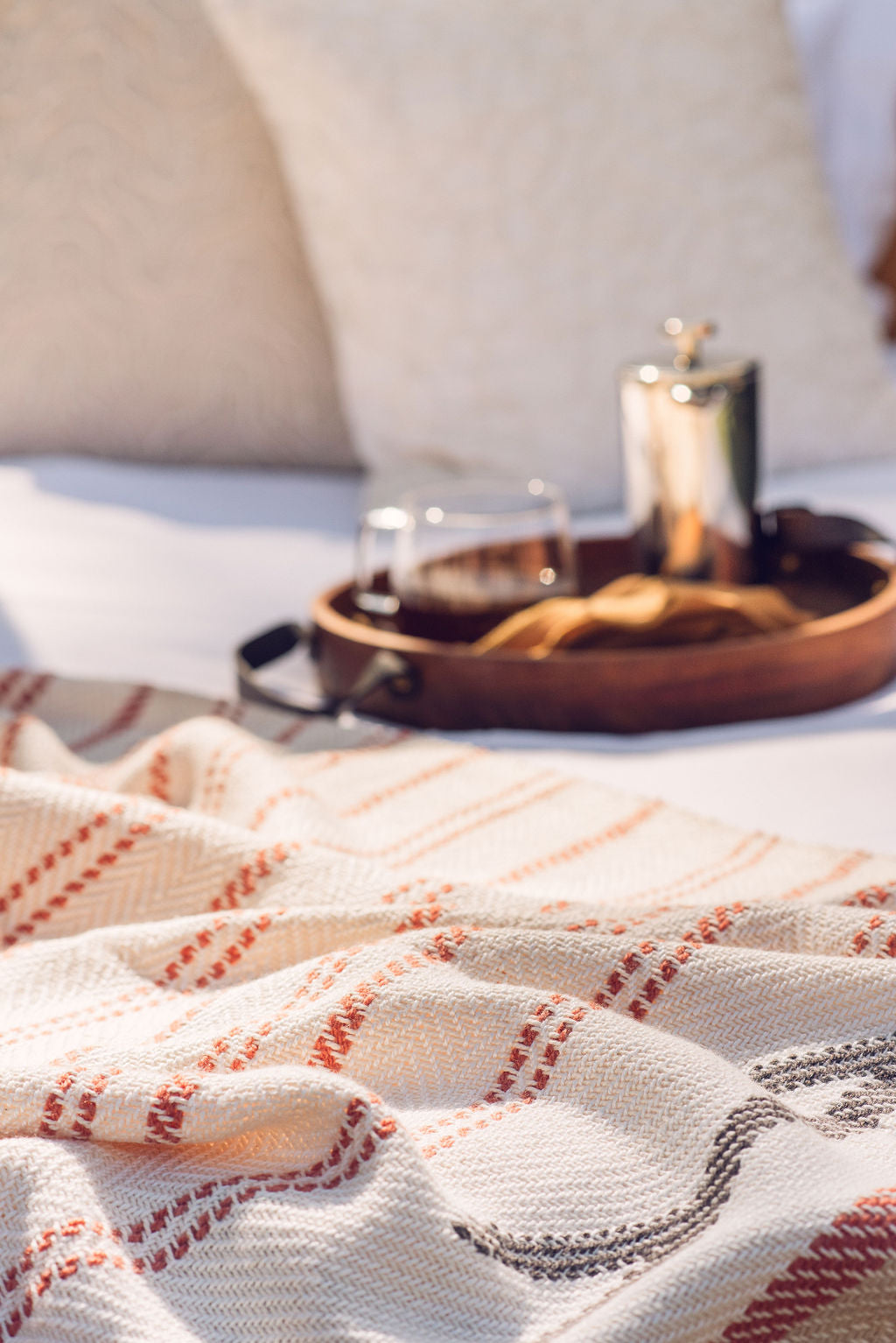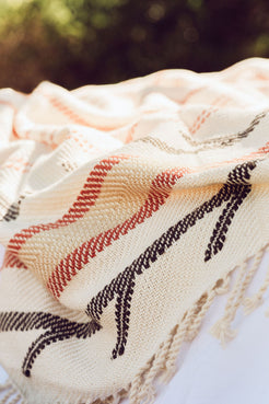 A handwoven, large blanket.  Colour: White. 155cm x 220cm. 60% Cotton, 40% Bamboo.