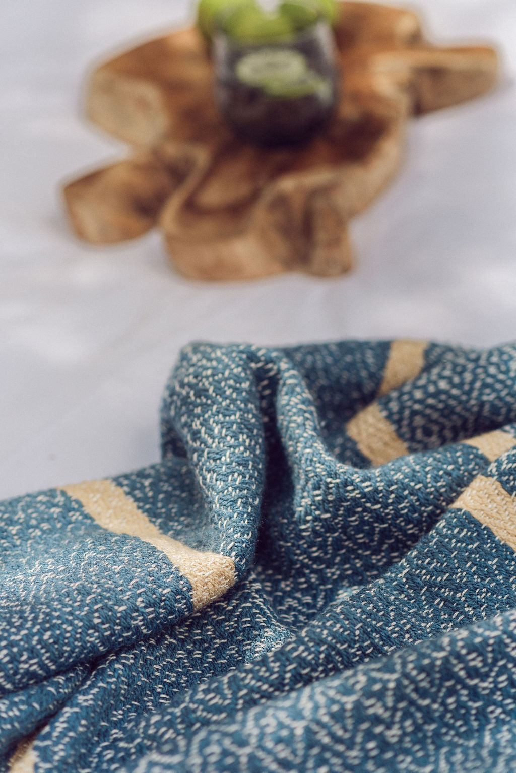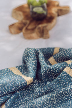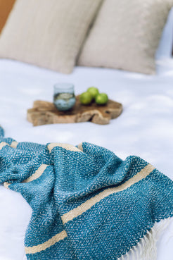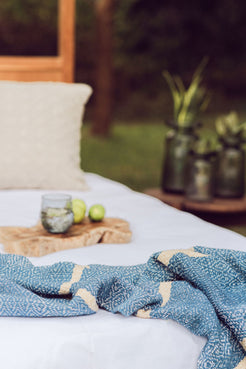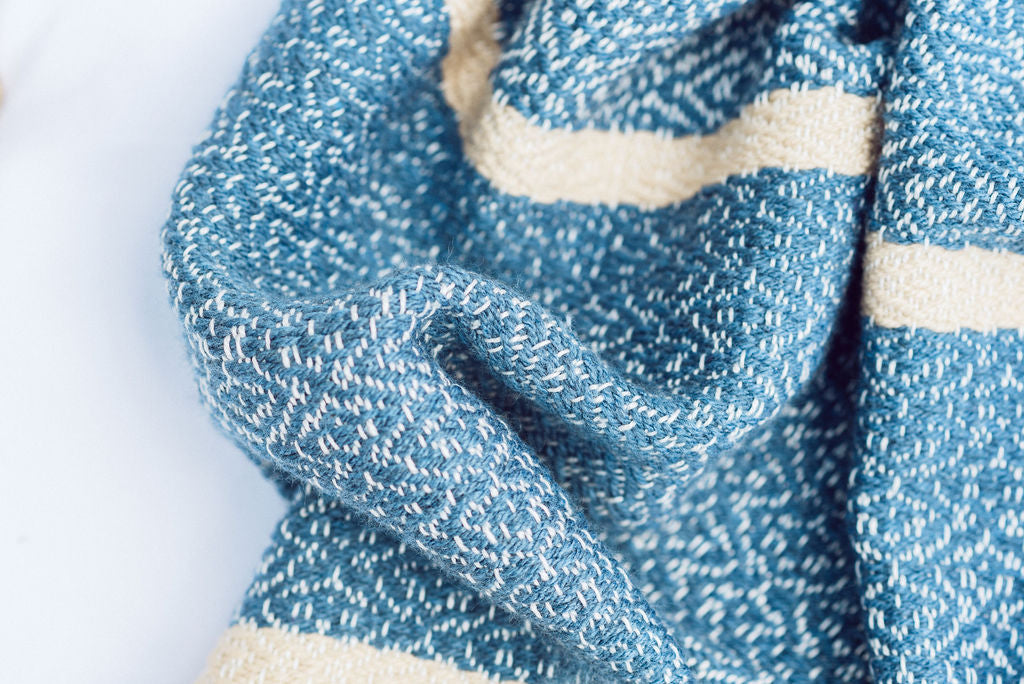 A handwoven, large blanket.  Colour: Blue and white.  160cm x 220cm 100% unbleached cotton.