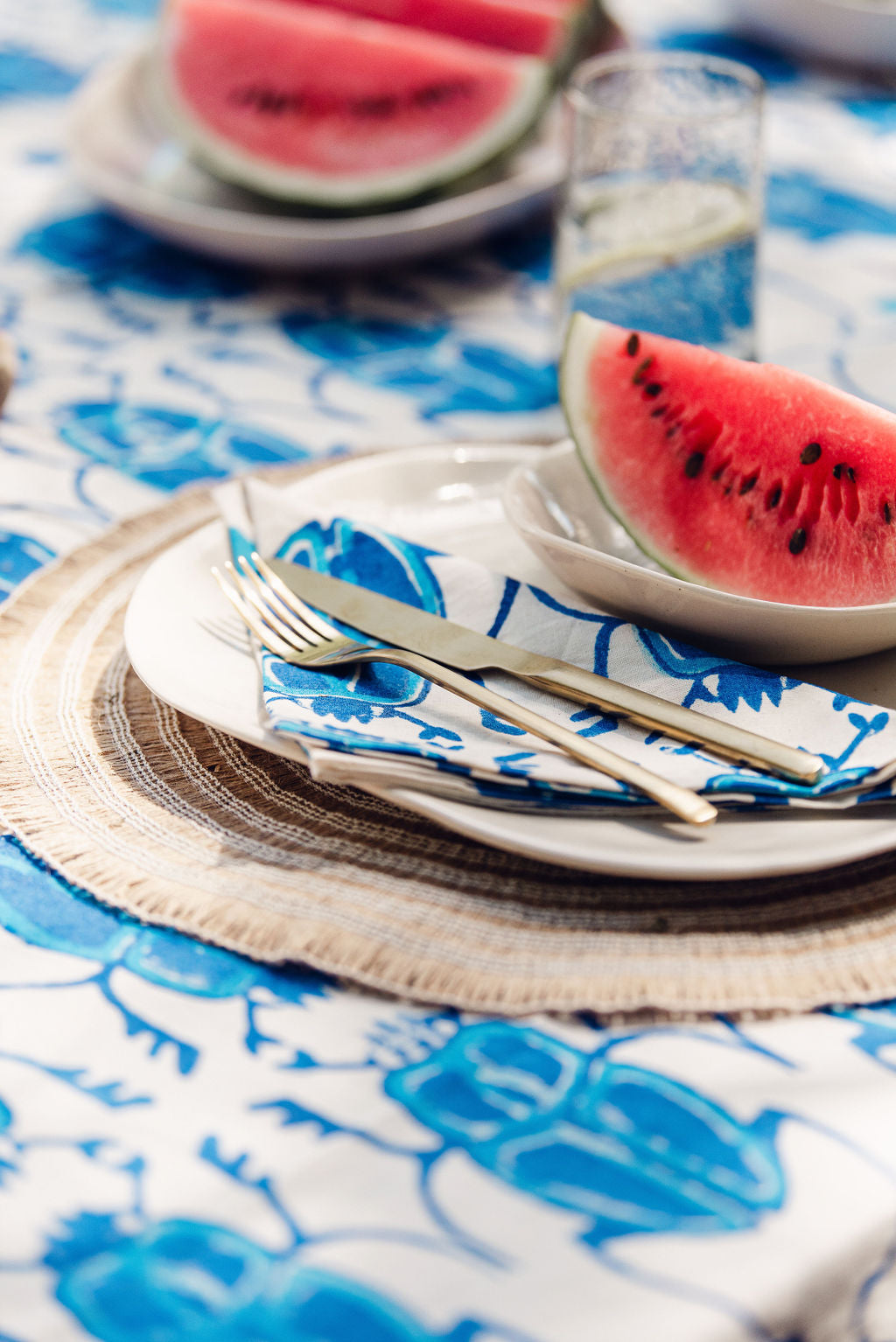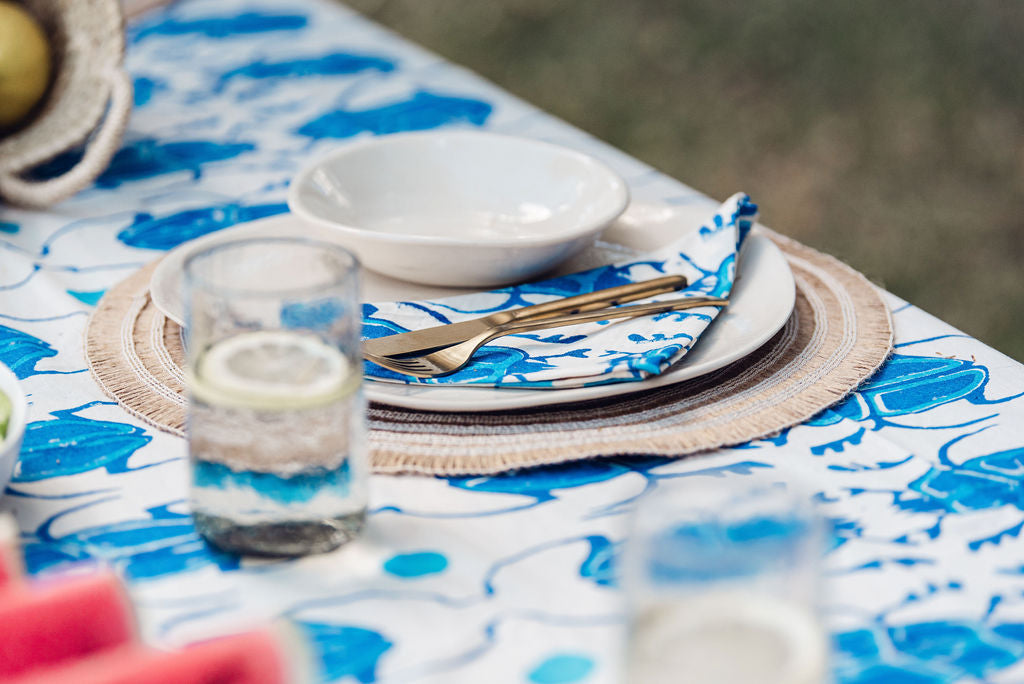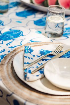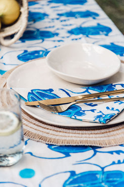 Set of 10 hand stamped napkins. Blue and white.  Size: 25cm x 14cm