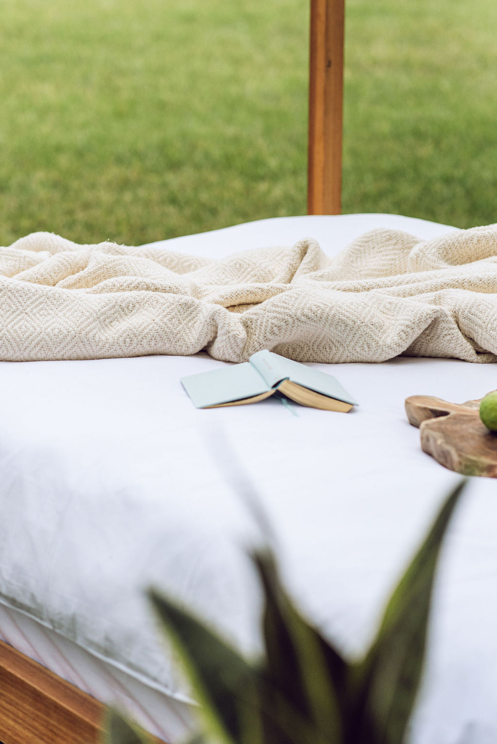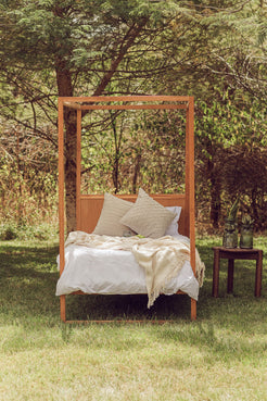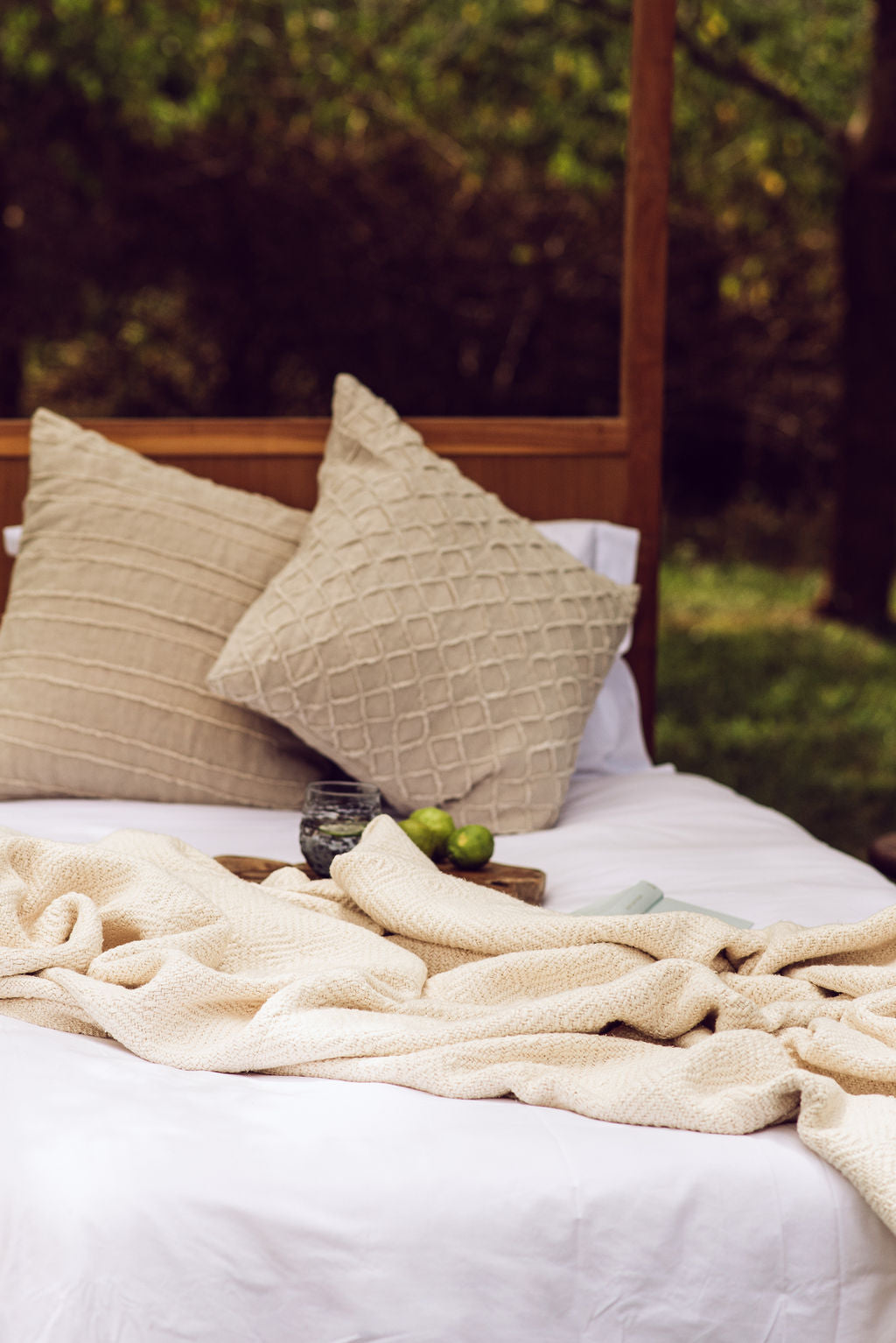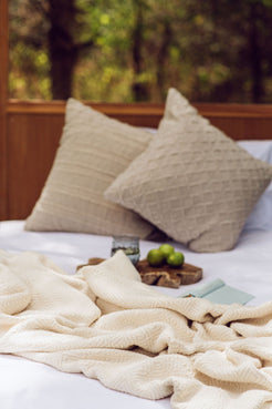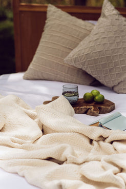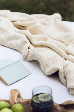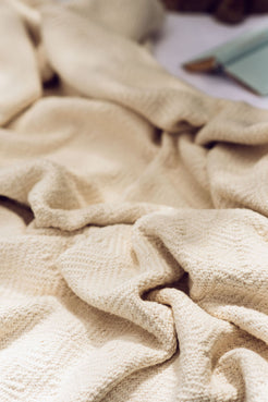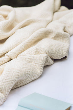 A handwoven, large & thick blanket.  Colour: Unbleached white. 165cm x 200cm. 100% Unbleached Cotton.